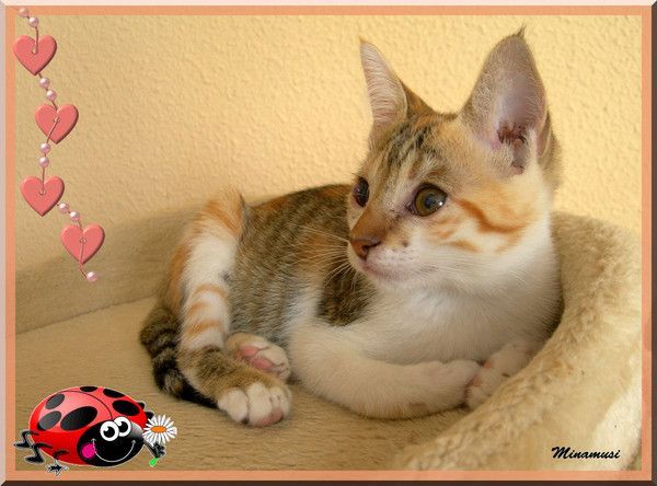Coucou chère Ana ,je persiste ,quel amour cette petite boule de poils aux trois couleurs ,c'est malheureux pour sa vue ;Je suie contente que son petit frère va mieux ,tu es privée de ne pas pouvoir en profiter...J'ai mis une de tes créa sur mon blog Kdo !