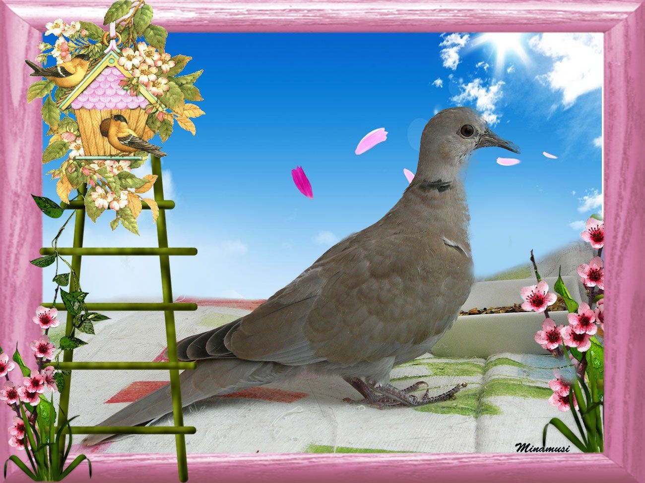 pajaro paloma tourterelle tortola oiseau pajaro carte virtuelle montage merci